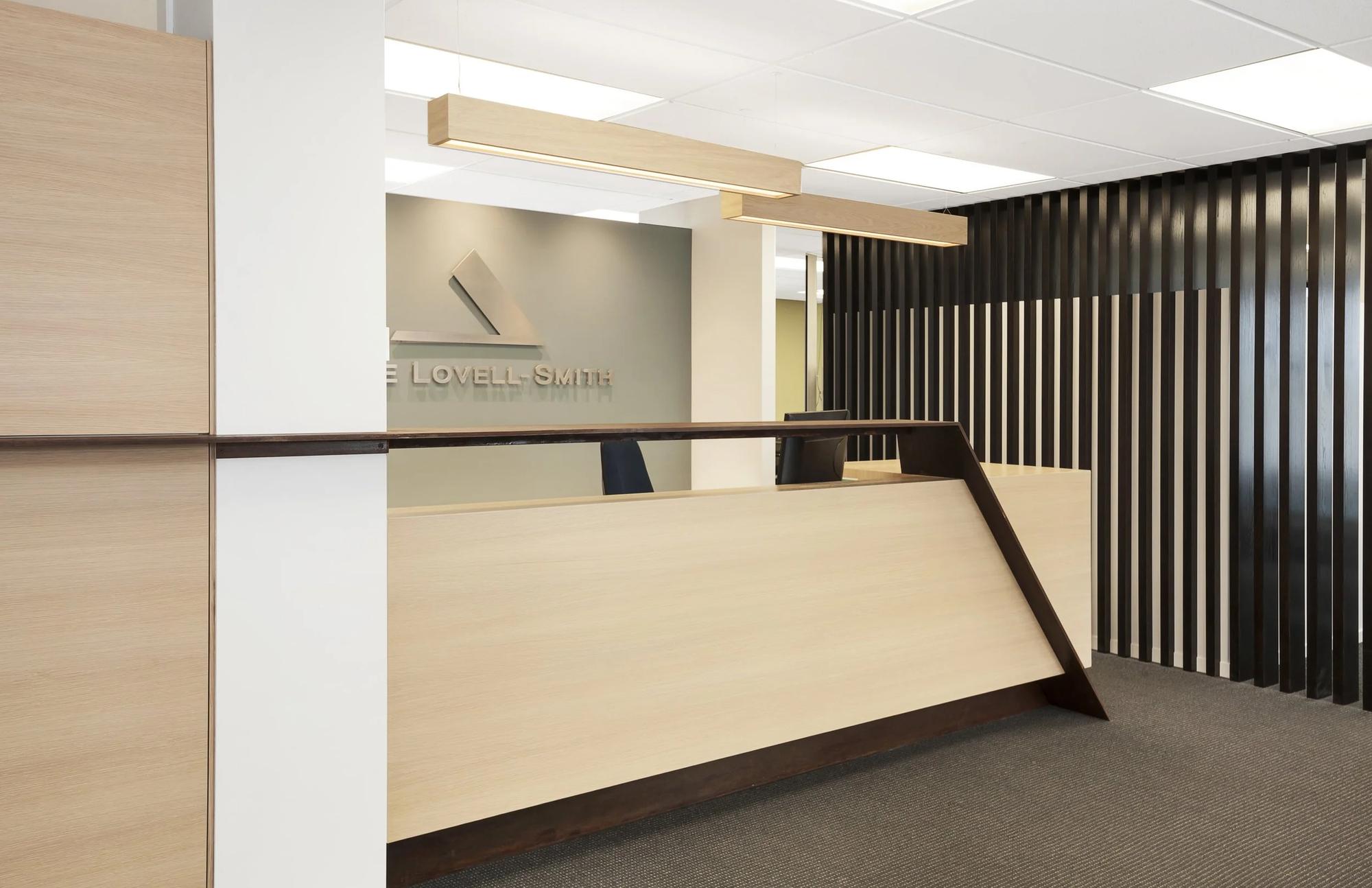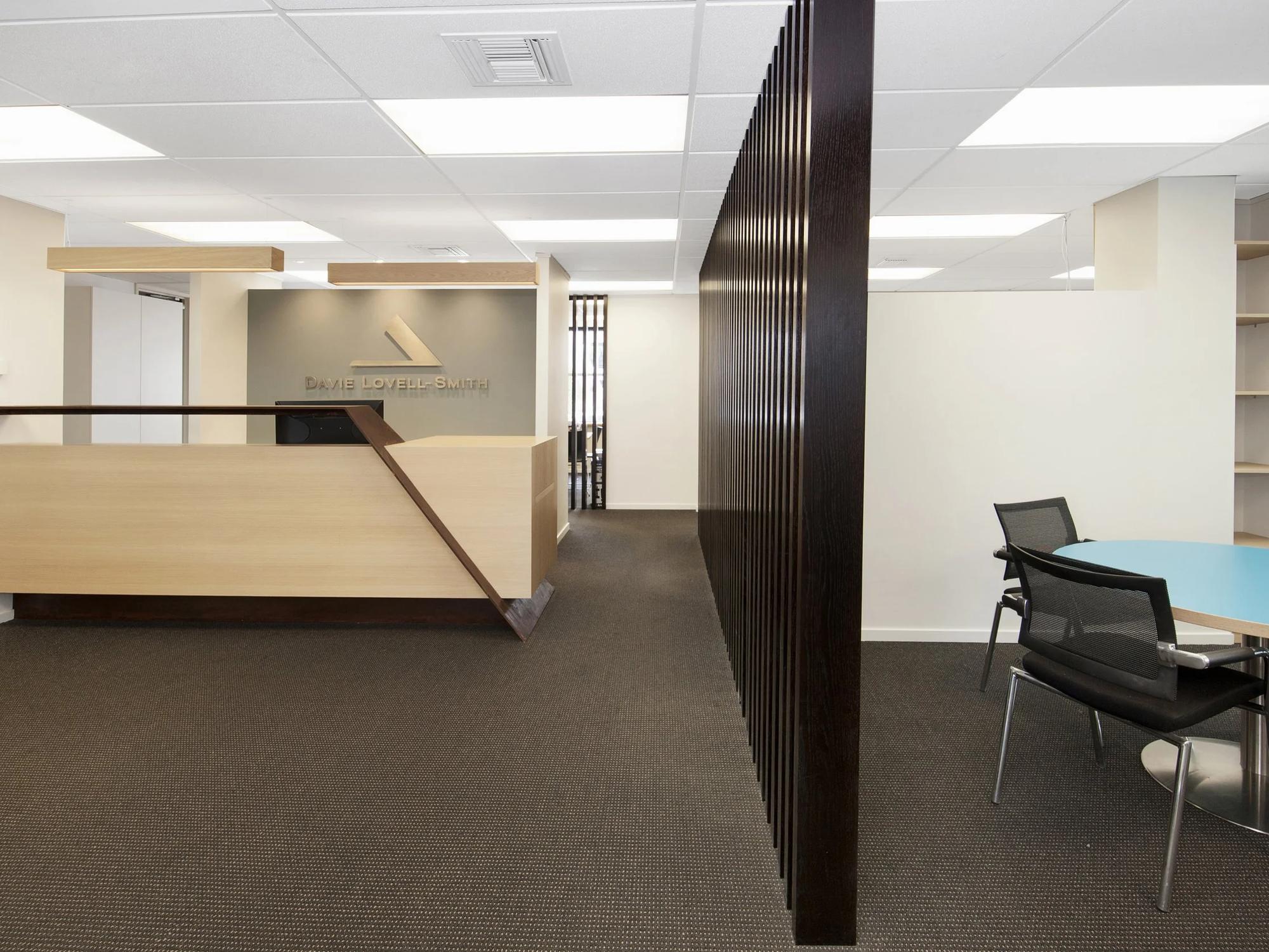 The scope included the introduction of new dividing walls and screens to better define spaces and provide privacy where required. A new reception desk was carefully designed to establish a clear focal point on arrival, complemented by considered material selections that balanced durability with a refined, professional aesthetic. Furniture for the boardroom and waiting areas was selected to align with the company’s brand and ensure comfort, flexibility, and longevity.