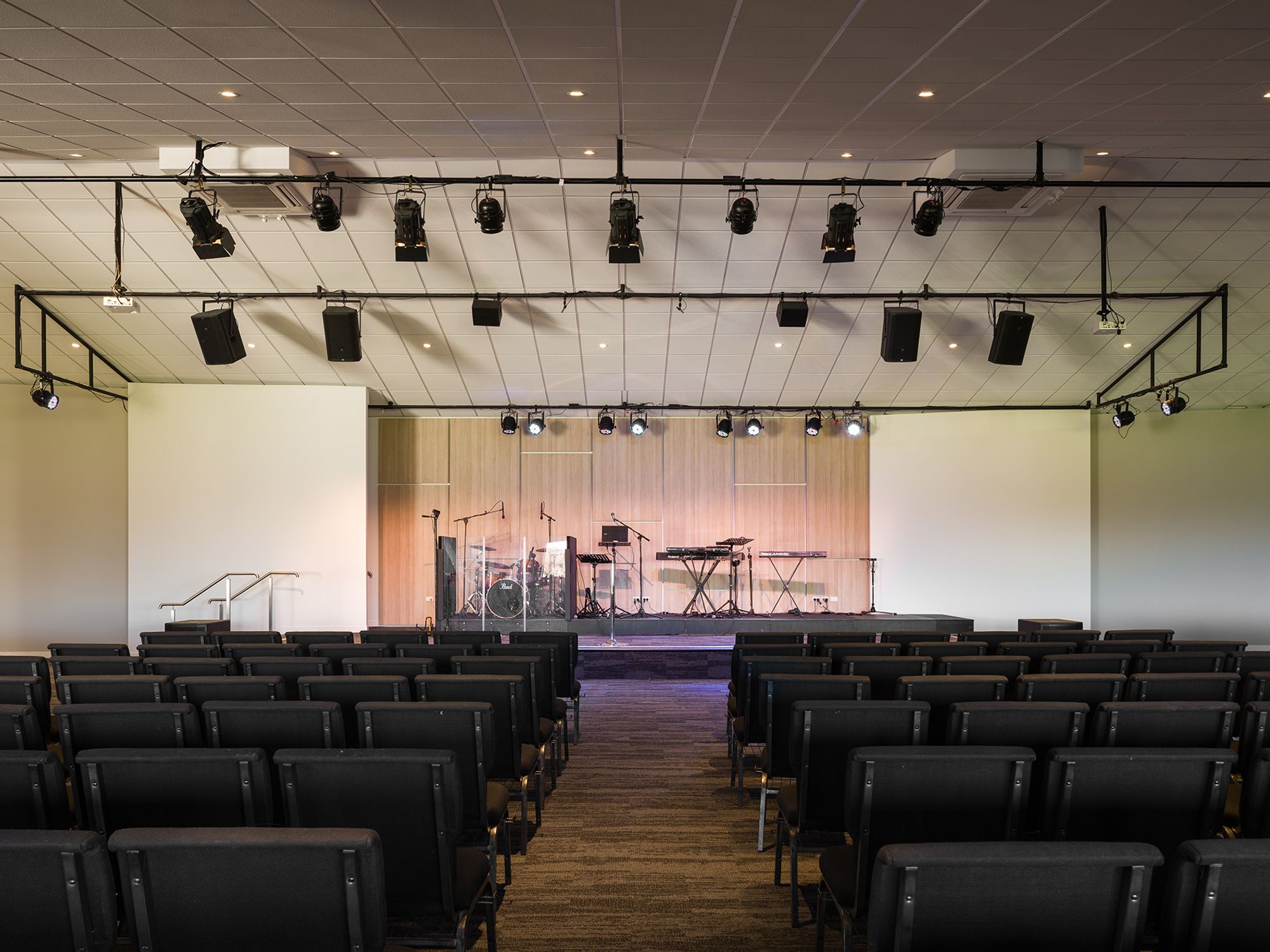 The completed building balances the constraints of the existing structure with the Church’s desire for openness and community engagement. The auditorium now serves as a bright, inviting heart, while the ground floor encourages interaction and accessibility. Close collaboration with the Church and main contractor (HRS Construction) ensured the design was carefully realised, delivering a bespoke, flexible, and welcoming home for Every Nation Church.