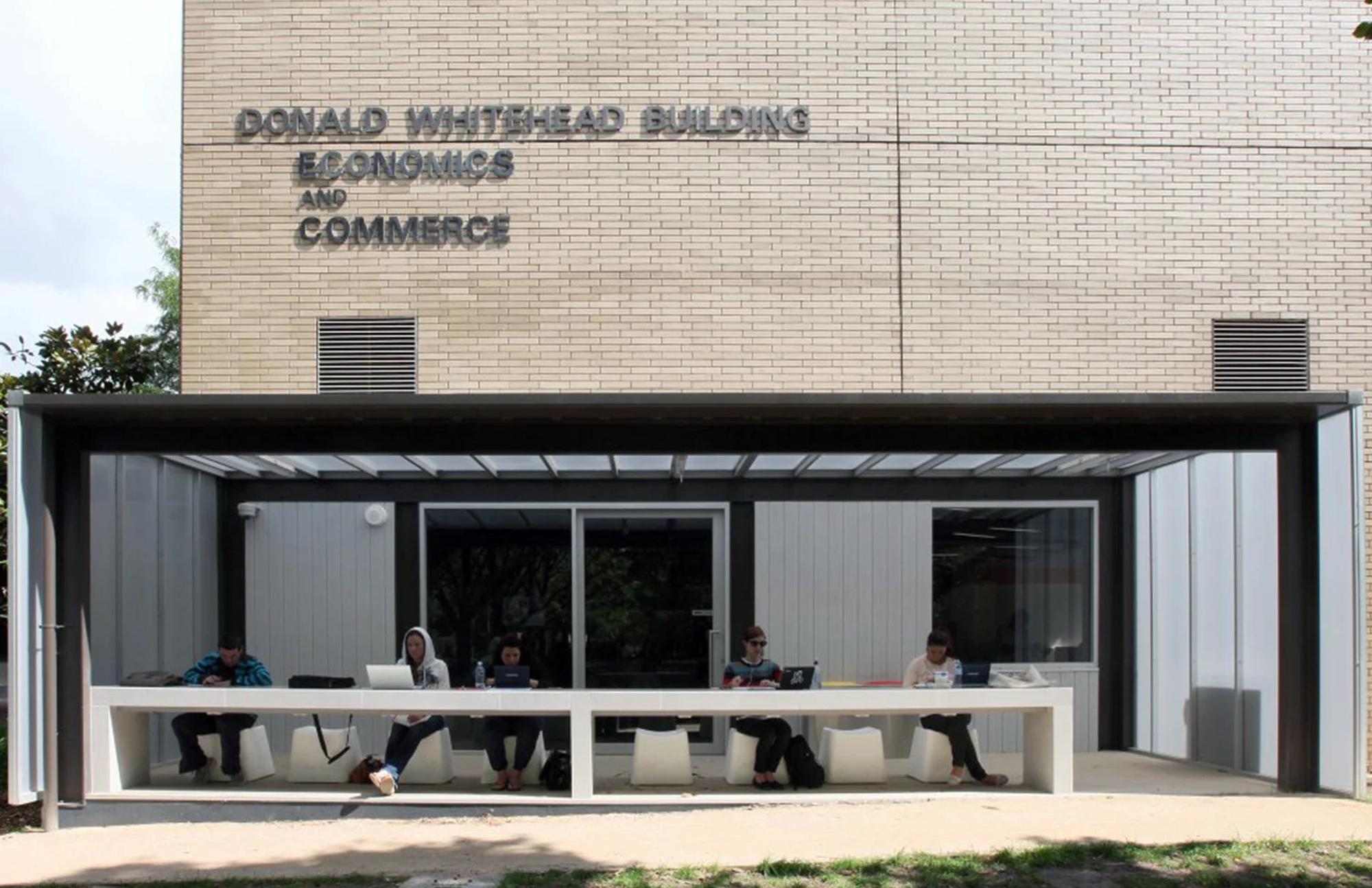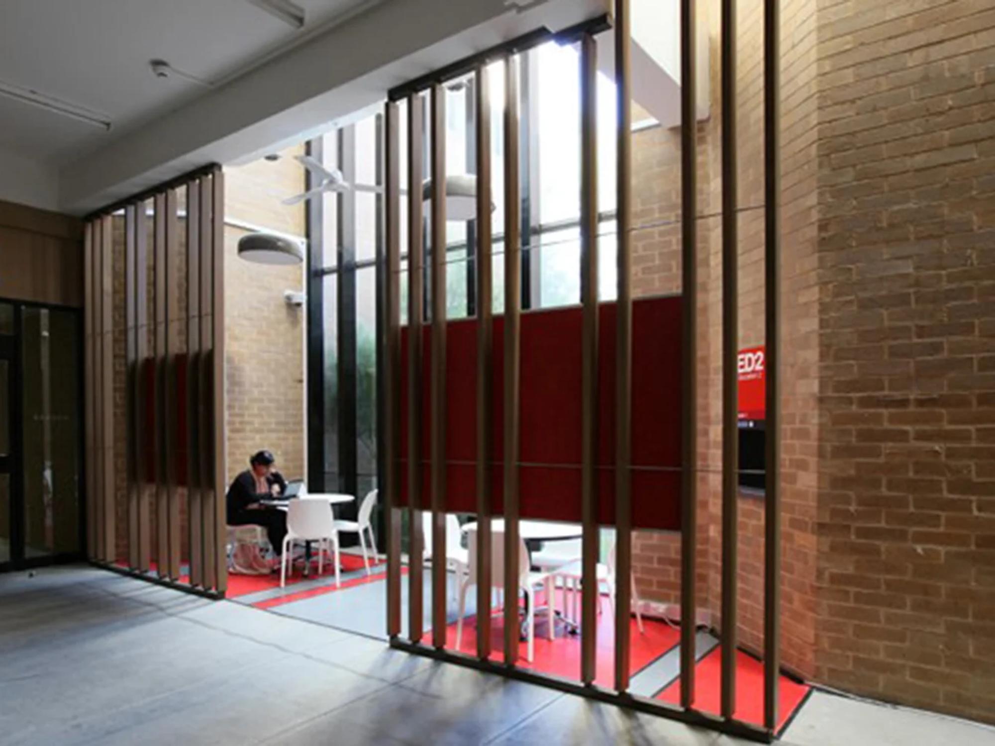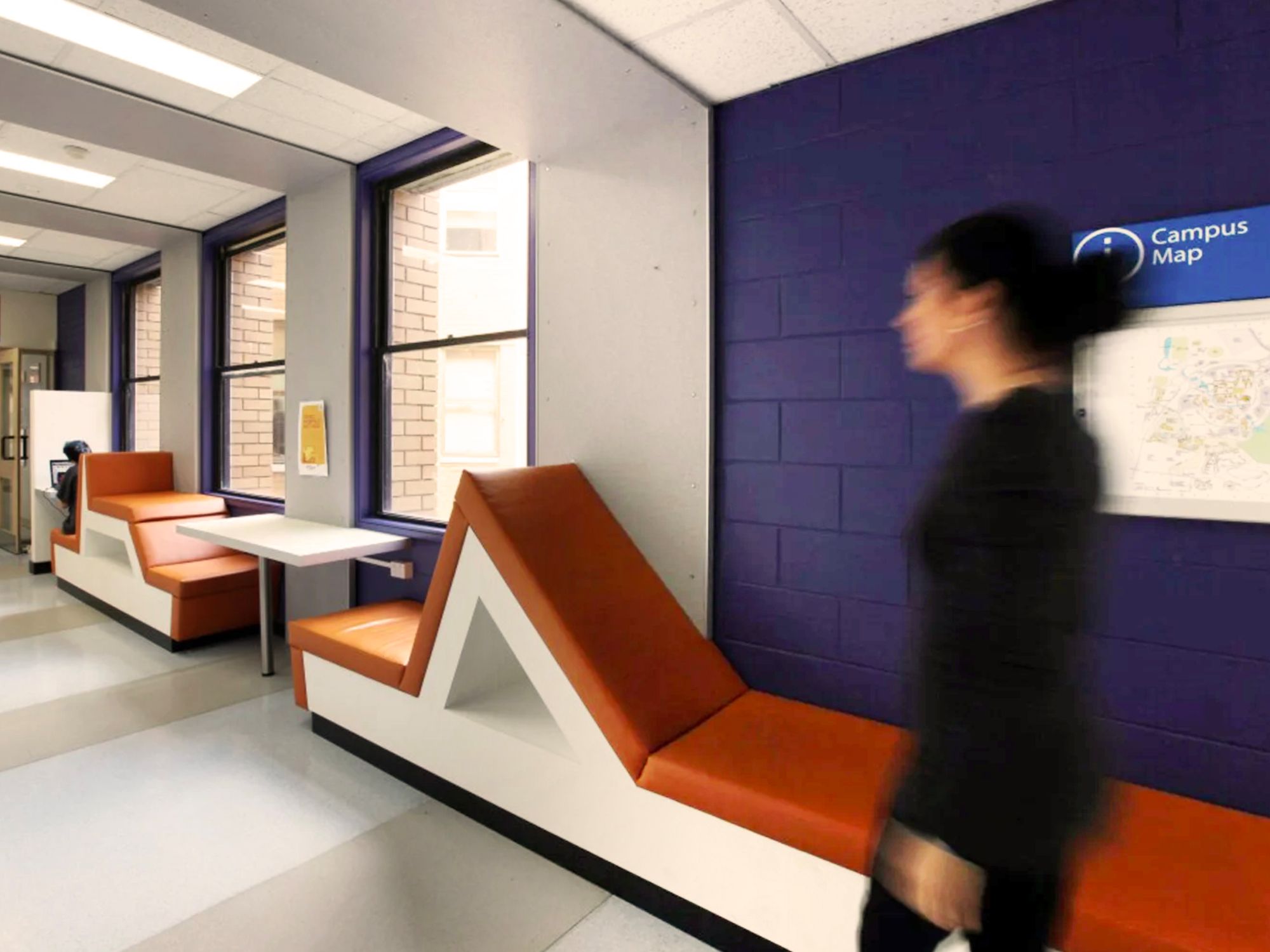 The corridors connecting the Education-Humanities and Martin Buildings have been transformed into student-friendly hubs, accessible 24/7. Colour, pattern, texture and graphics have been integrated through materials that wrap walls and ceilings, creating vibrant, engaging spaces that stimulate learning and interaction.