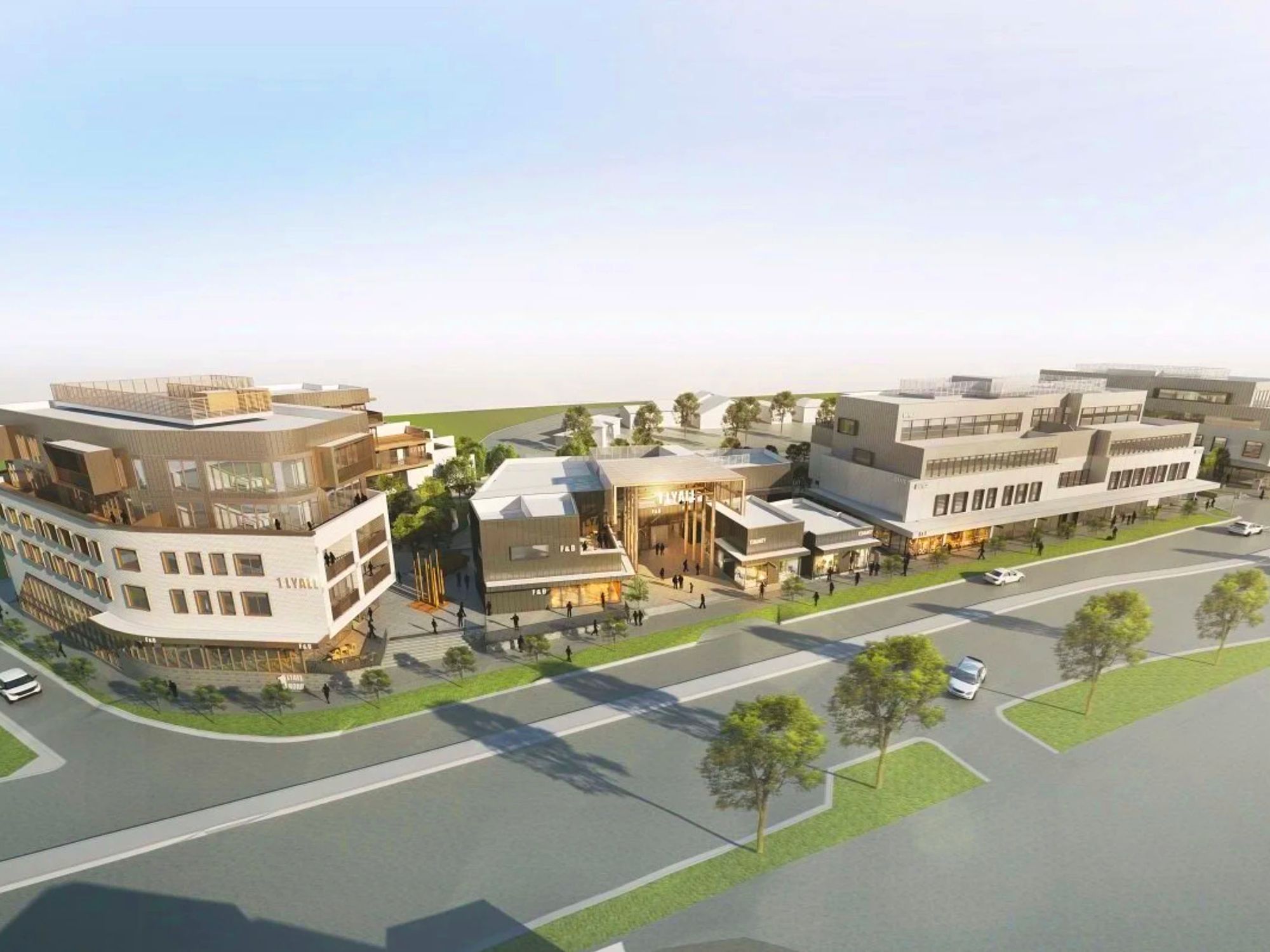 Given the scale of the site, a strong urban strategy was essential. The design reinforces an activated streetscape along Lyall Road, shaping a modern main street experience anchored by retail, commercial, food and beverage tenancies, serviced apartments and residential living. A central Market Hall dining destination forms a key focal point, designed to operate throughout the day and into the evening, strengthening activity and connection across the development.