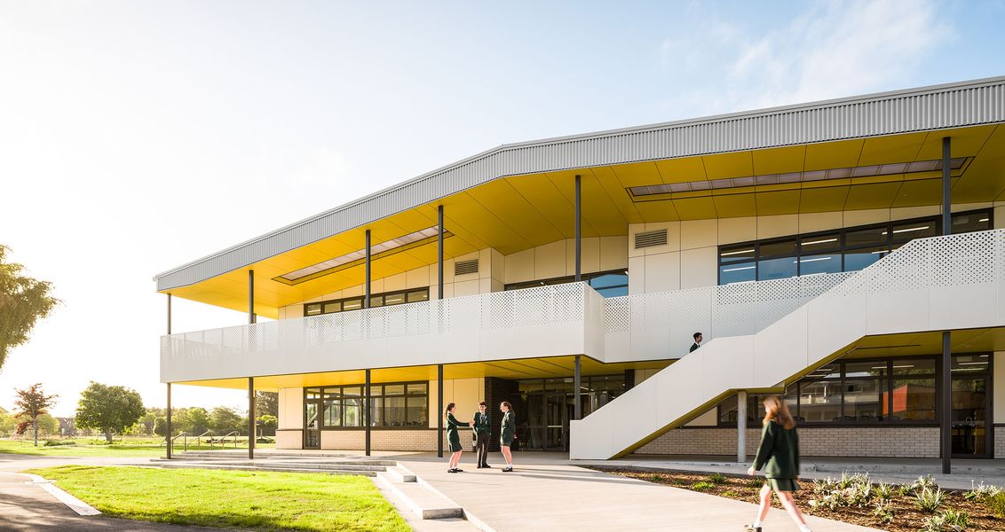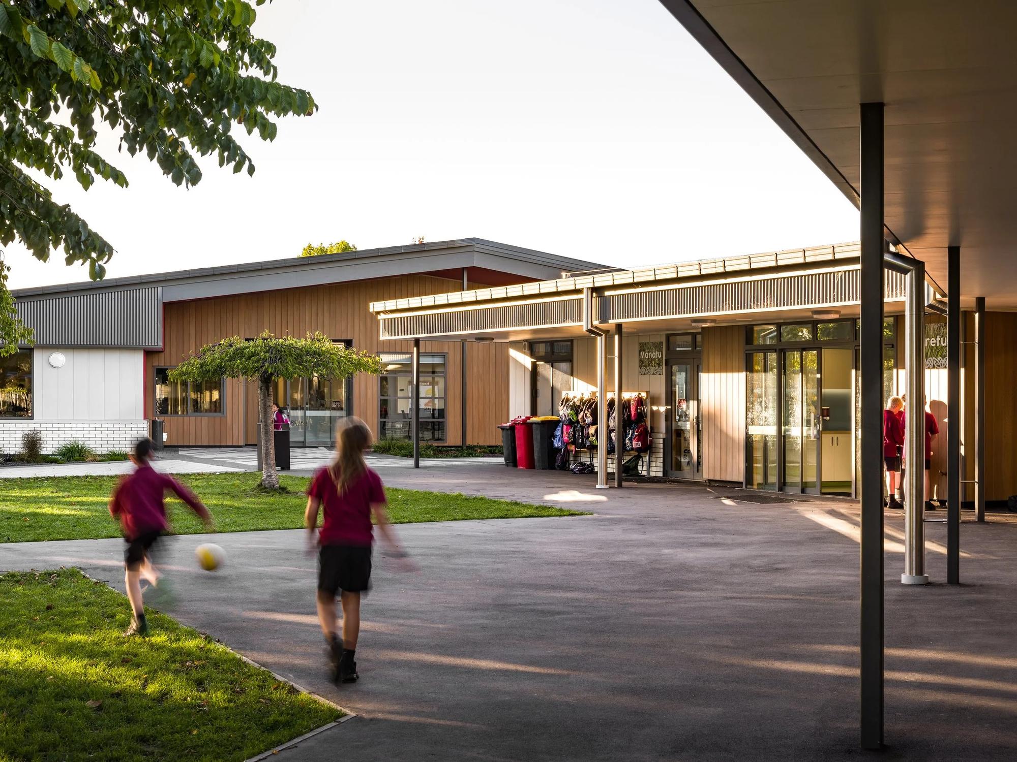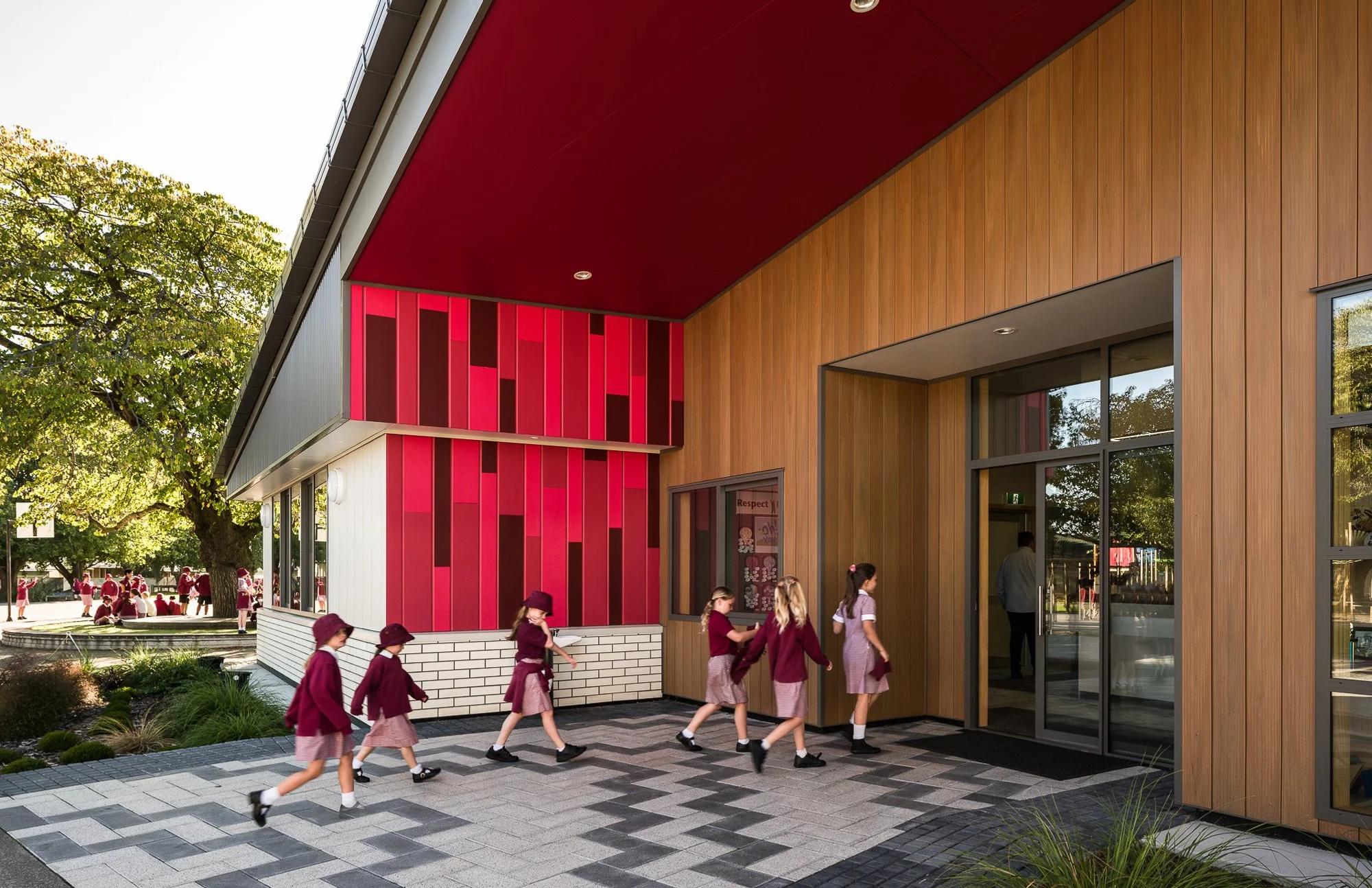 The existing Hall and classroom blocks were upgraded, while the removal of outdated buildings at the centre of the site created space for two new teaching blocks, a library and administration facilities. Together, these elements are organised around a landscaped plaza that brings clarity to the campus layout and strengthens connections between shared spaces. The result is a school environment that feels open yet grounded, designed to support learning well into the future.
