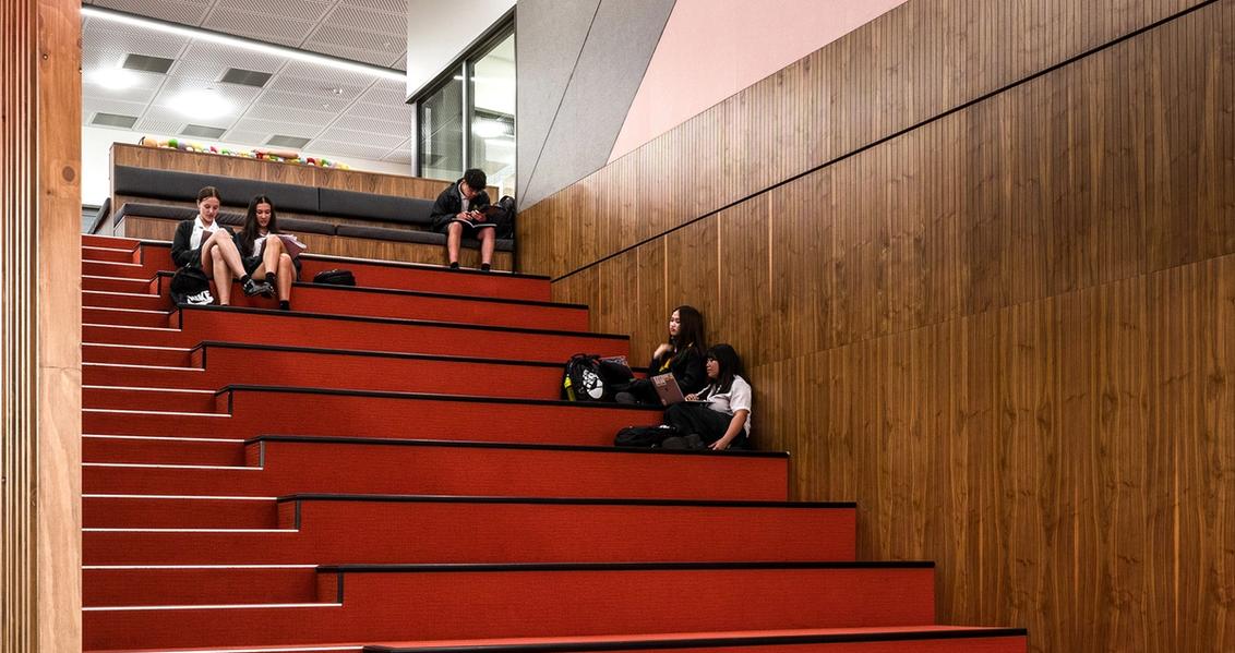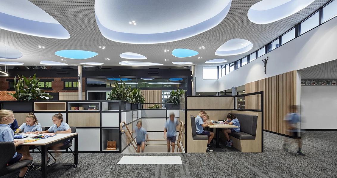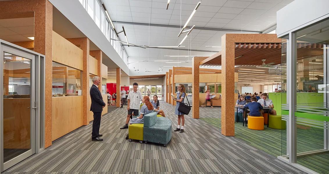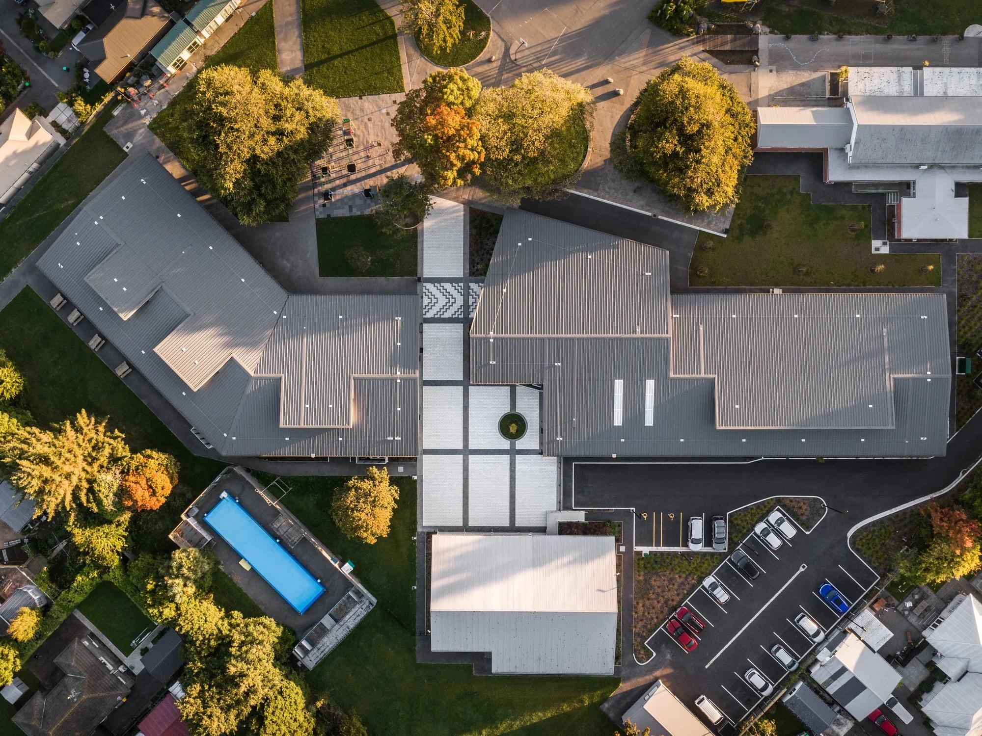 The existing Hall and classroom blocks were upgraded, while the removal of outdated buildings at the centre of the site created space for two new teaching blocks, a library and administration facilities. Together, these elements are organised around a landscaped plaza that brings clarity to the campus layout and strengthens connections between shared spaces. The result is a school environment that feels open yet grounded, designed to support learning well into the future.
